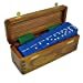 This Double Six Set of Blue Dominoes, with white spots. (28 Tiles) have spinners, for easier mixing. The tournament, jumbo size set (2" X 1" X 1/2"). comes in an Elegant Sheesham Wood Box, enhanced by beautiful, strong dovetail joints.