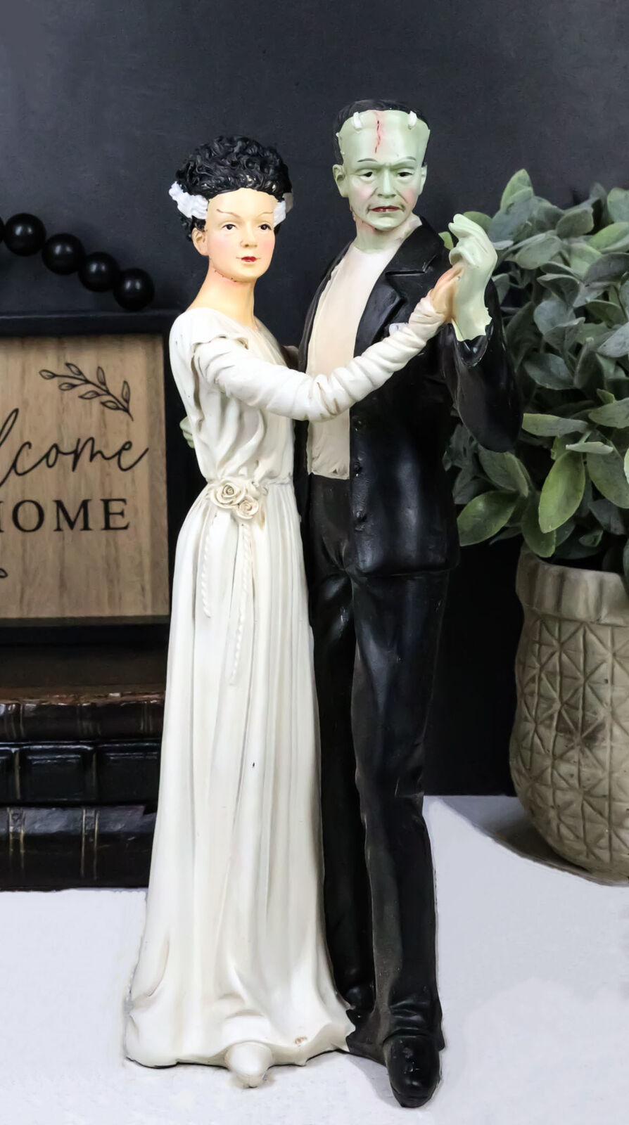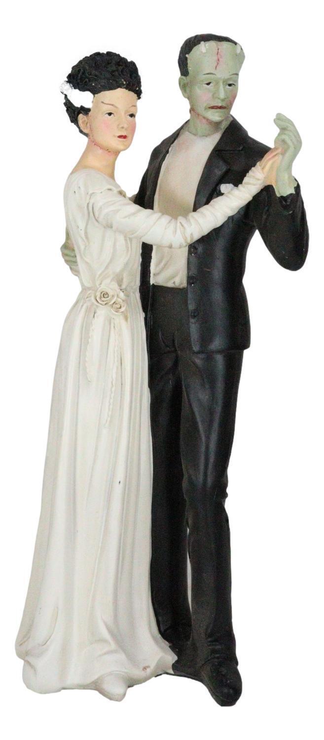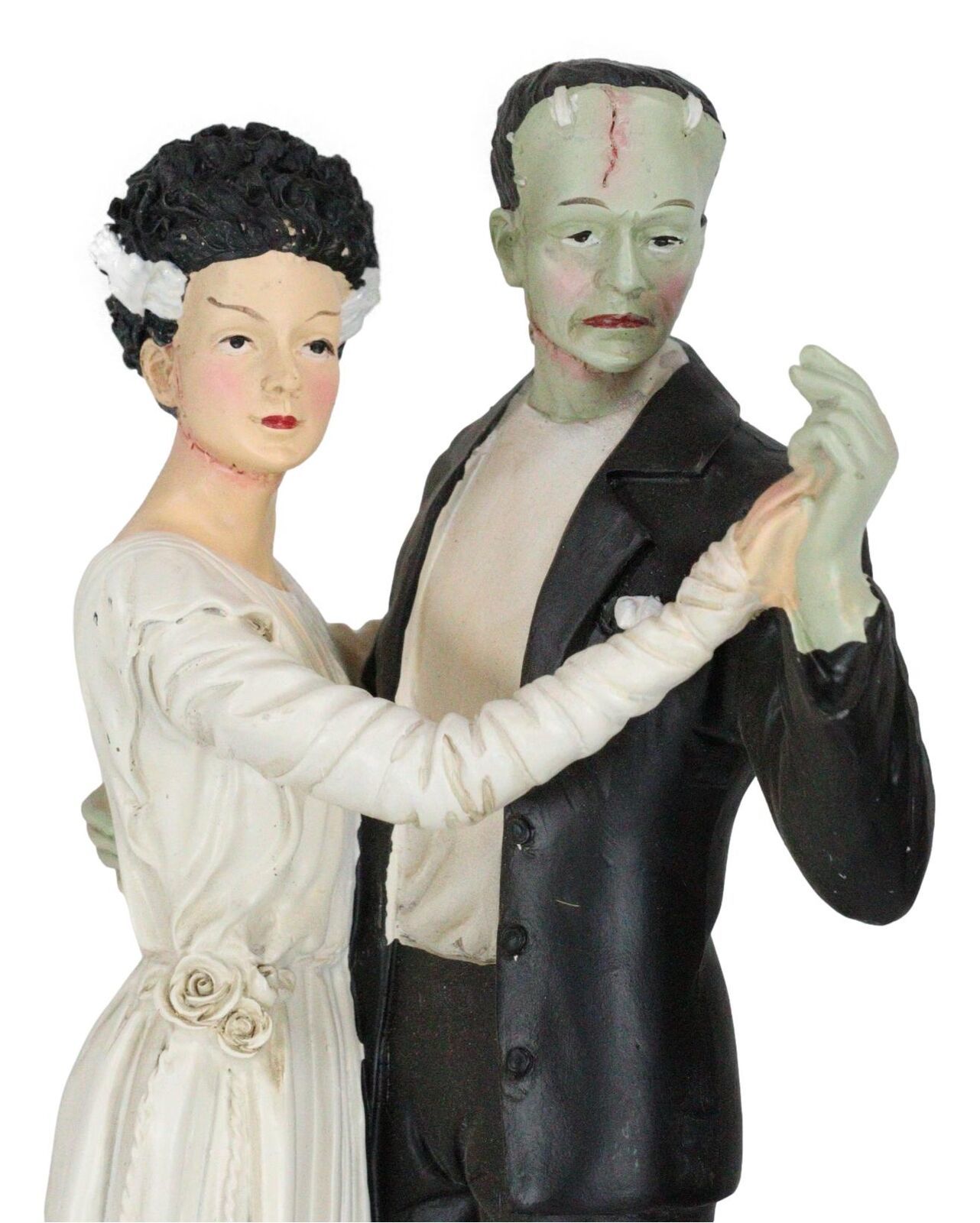 ? Frankenstein and the Bride are stealing the show with their ballad dance. This sculpture is both bizarre and eerie all at once, making it the perfect decorative piece for Halloween, scary parties and more!