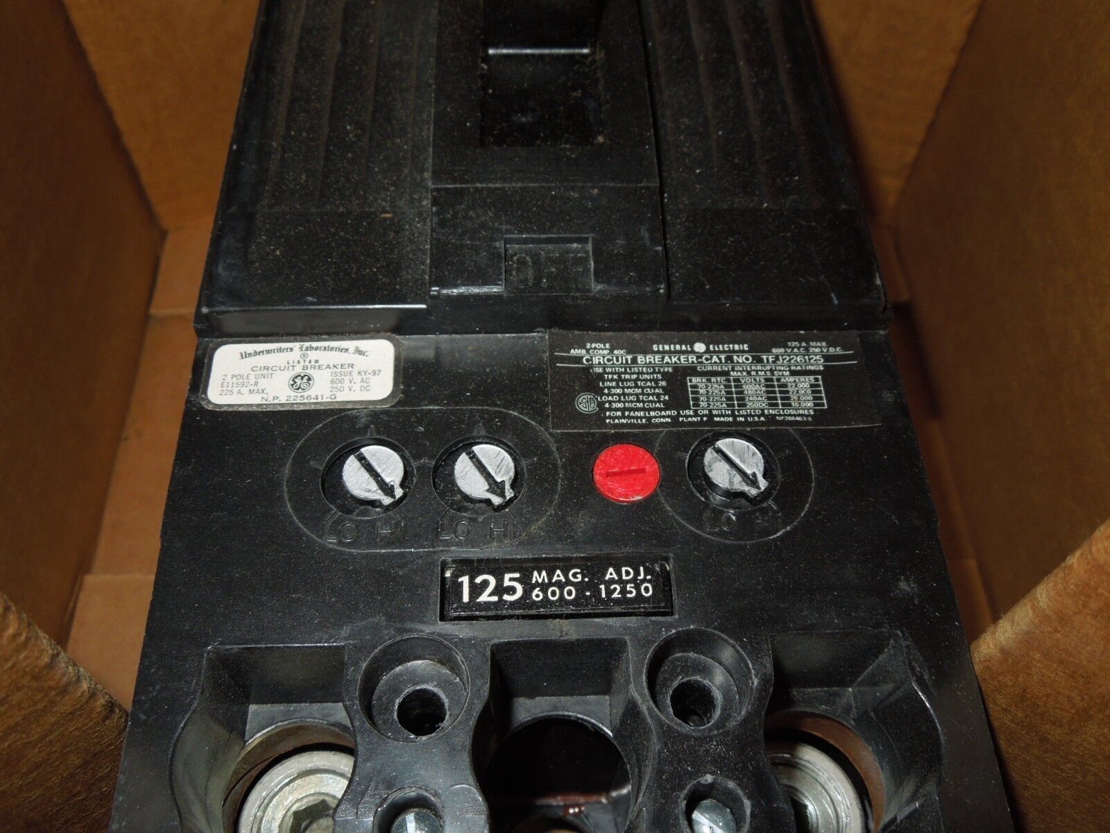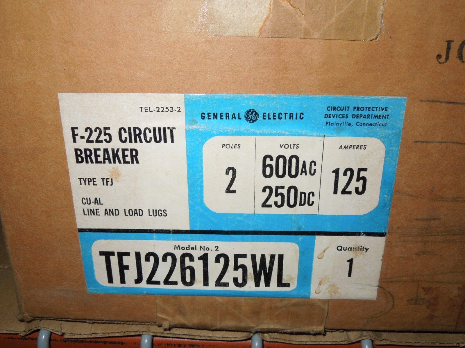 GE TFJ226125WL 125A 2p 600VAC 250VDC Circuit Breaker New Surplus in Box