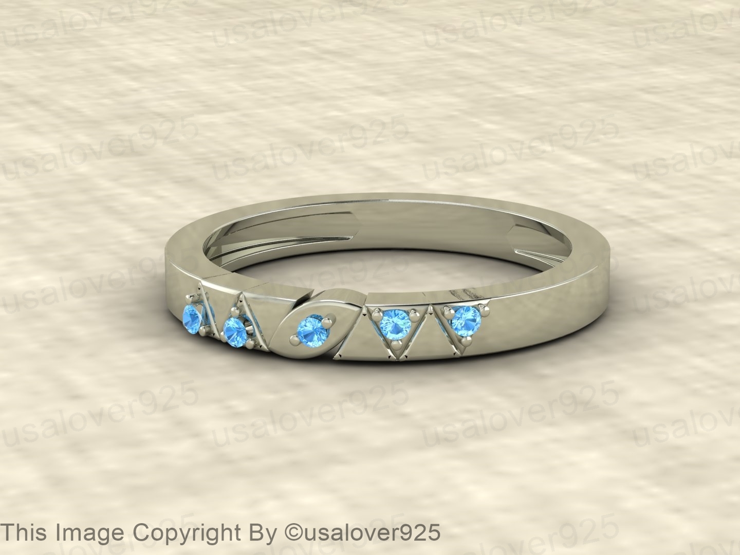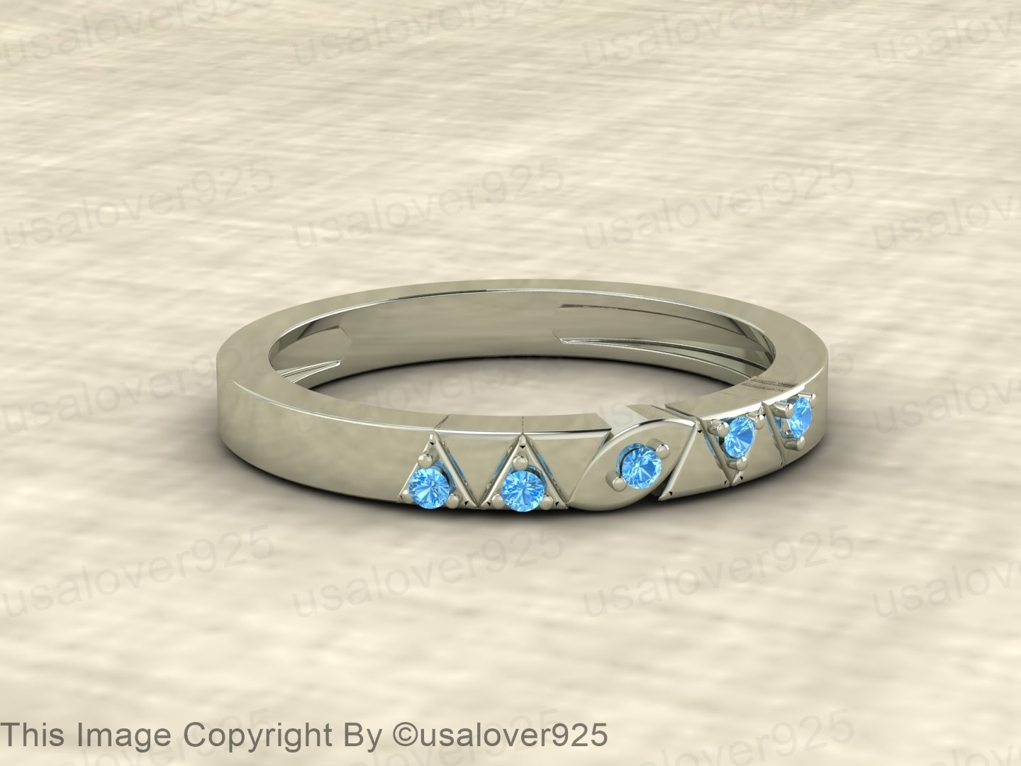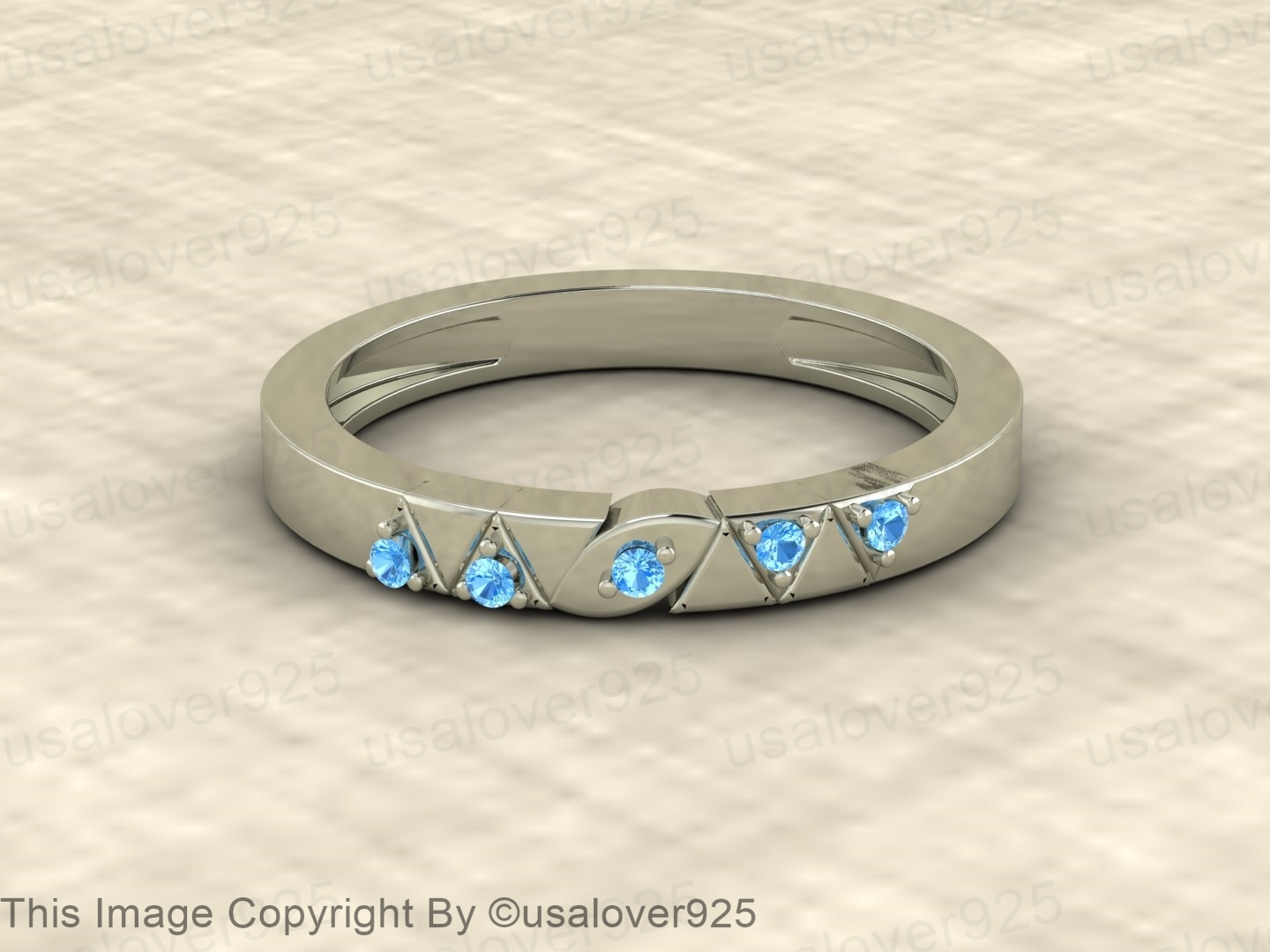 Natural Blue Topaz Round Gemstone Women Silver Designer Band Ring Jewelry