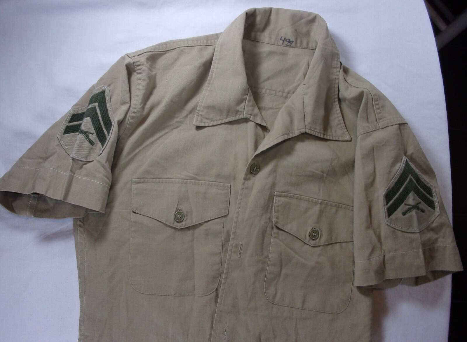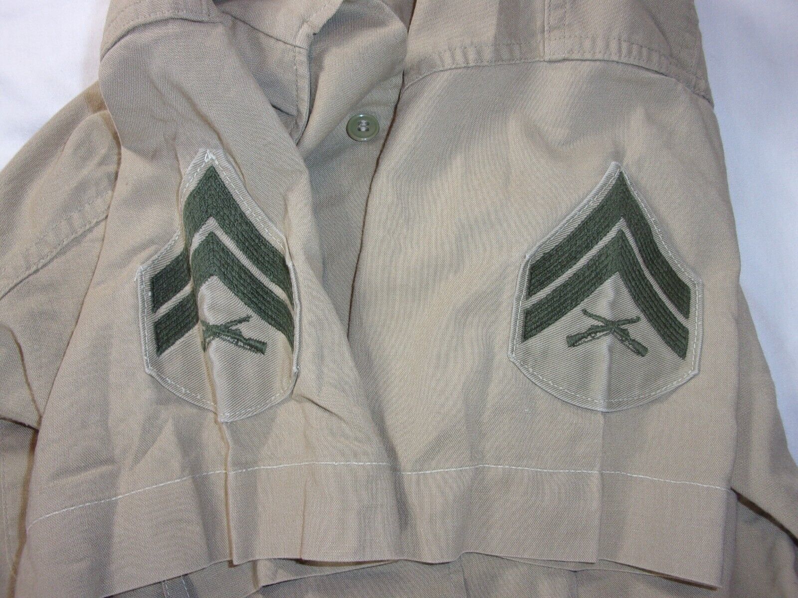 ITEM: USMC MARINE CORP TAN KHAKI UNIFORM SHIRT W/ STRIPES 36X 28.5