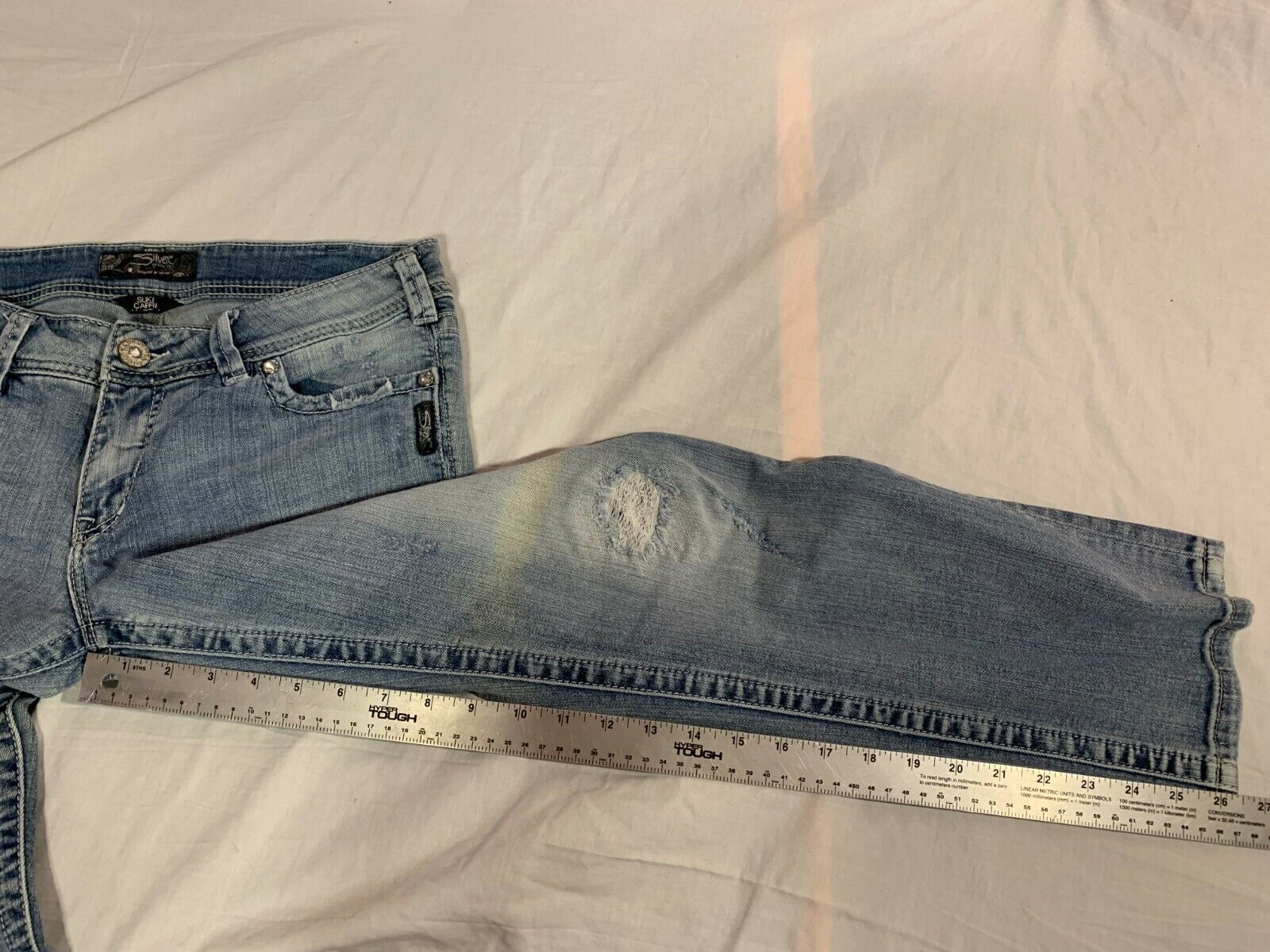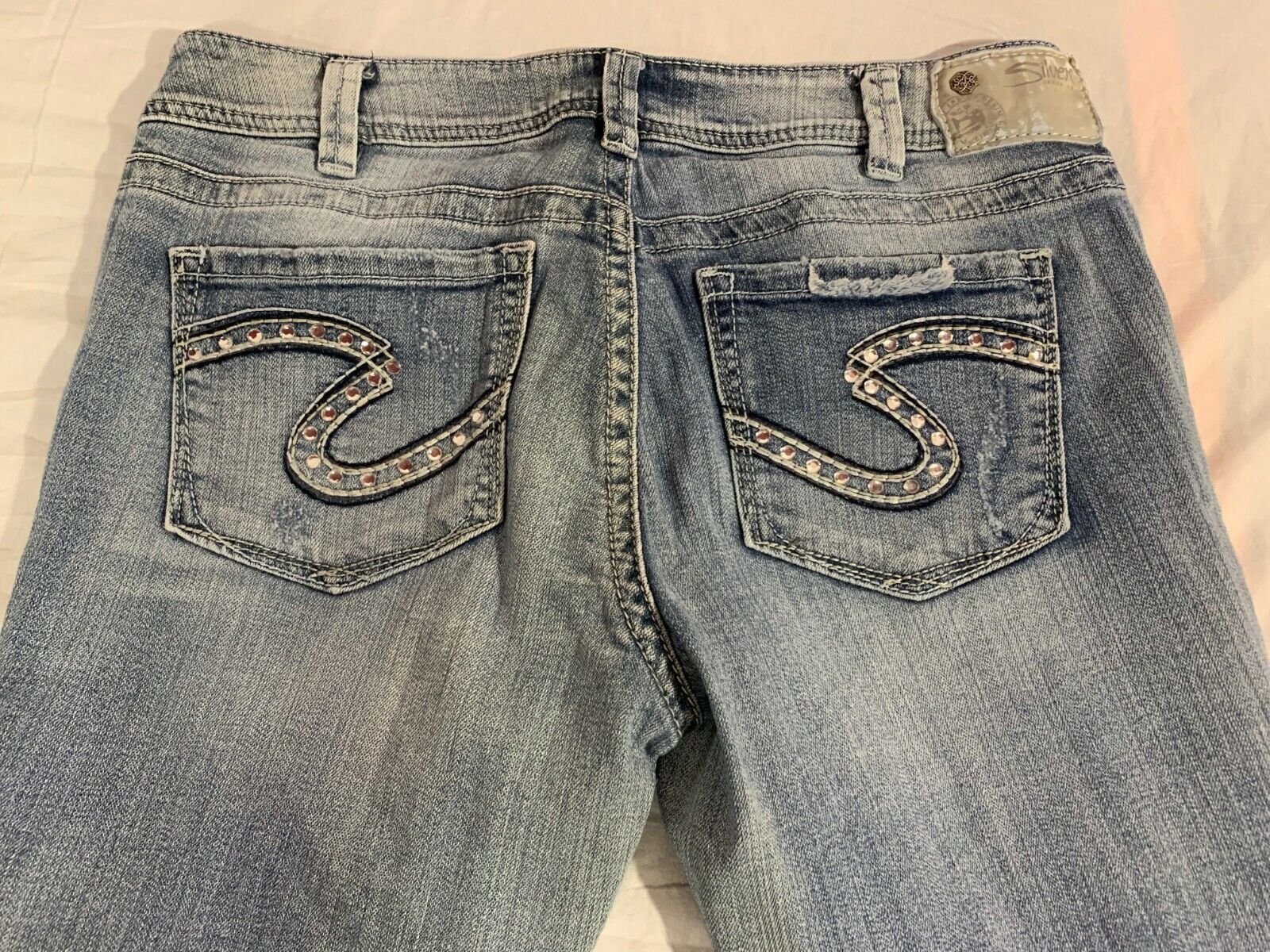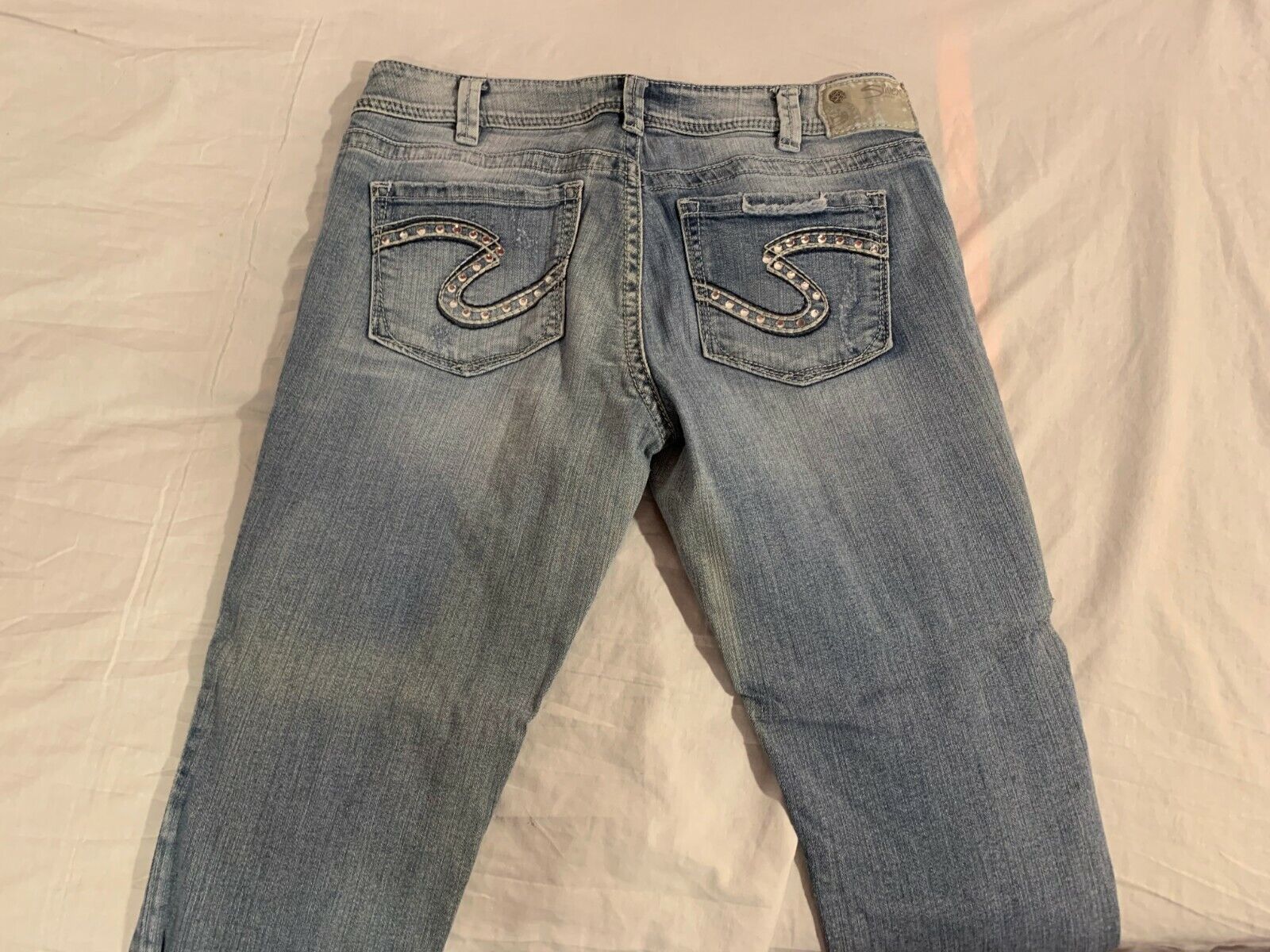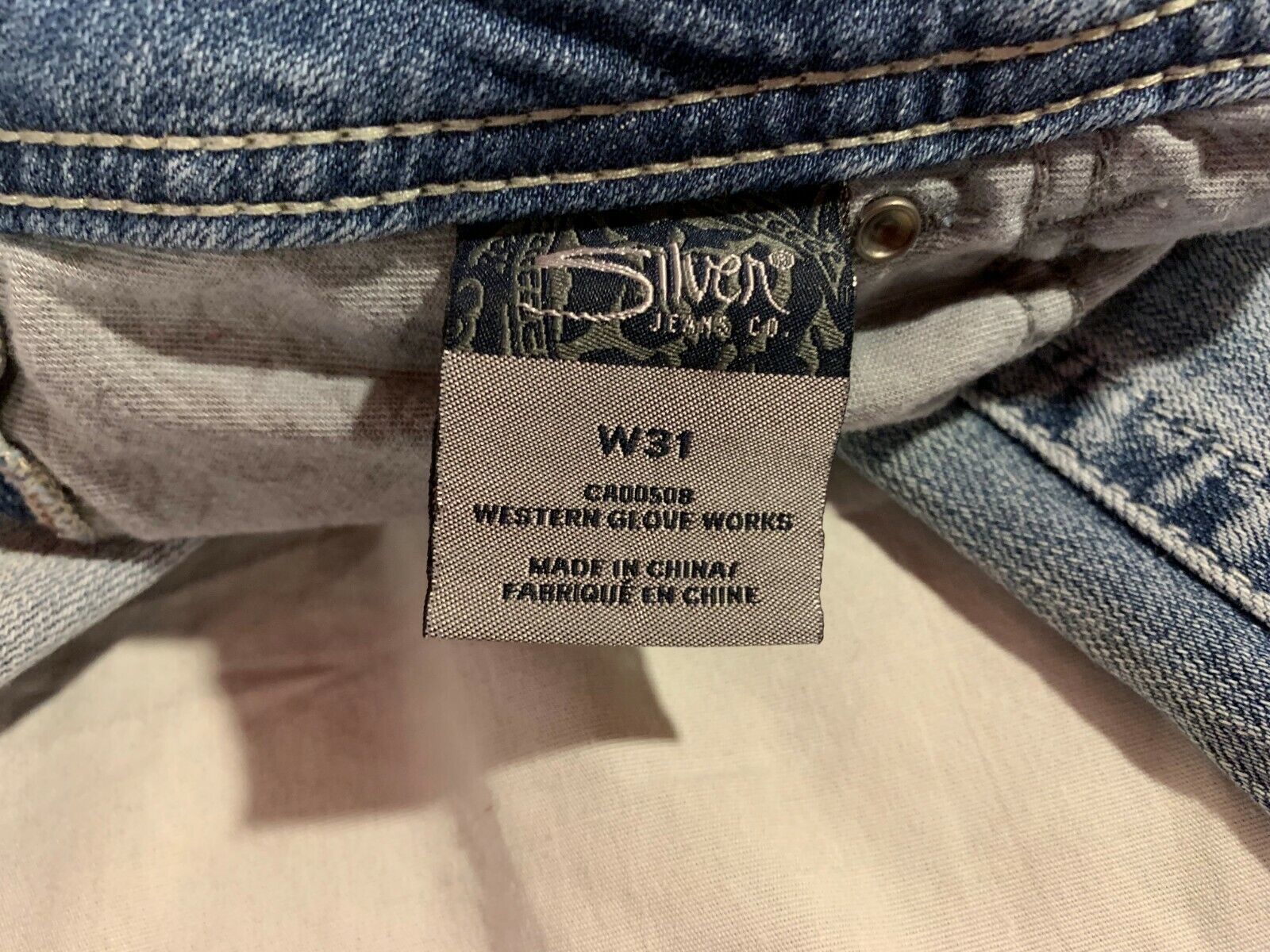 Our Jeans are 100 percent Authentic SILVER JEANS, we take pride in selling some of the best Brands known in the Industry, Each Pair of Pants have a size Label in each one of them , However we go one extra step and provide exact measurements in our pictures, we provide measurements for the waist, rise, and Inseam. We wash each pair of Jeans Twice, we will list every defect in our Auction. Each Pair of Jeans has been Inspected and although some have minor issues we pride our sales on showing every Inch in our pictures. Thank you for looking at our Store, we have sold over 1600 Pair of Jeans and have feedback from our customers, please take a quick minute to check out our feedback for the Jeans that we sell.