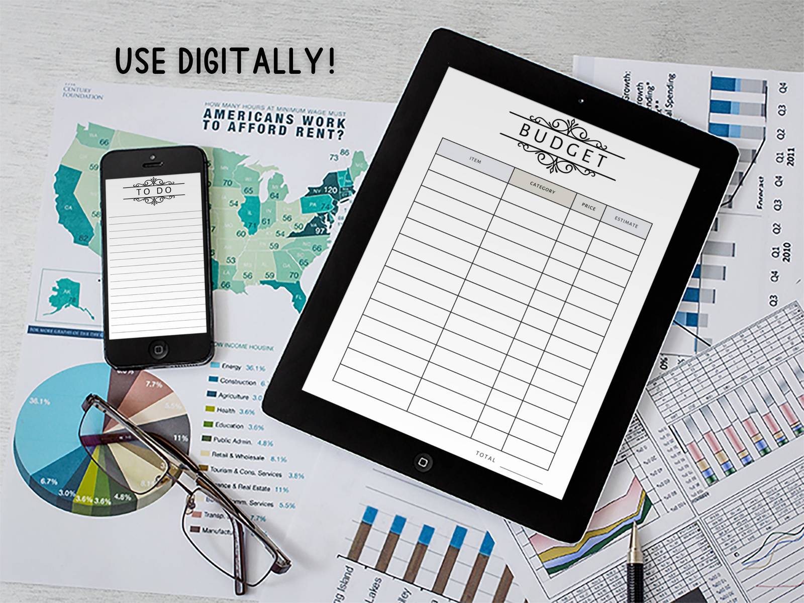 Get organized for your big day with the Wedding Planner Digital Printable. Easily create an organized and comprehensive list of tasks to make sure you have everything you need for the perfect celebration. It includes a wedding to do list, checklist, timeline, contact information storage, seating chart preparation and much more. The instant digital download makes it easy to access from any device-- no waiting for delivery! Get ready to create the ultimate wedding experience with this convenient digital planner.
