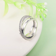925 Sterling Silver Crossover Pave Triple Band Ring With Clear Cz Ring For Women