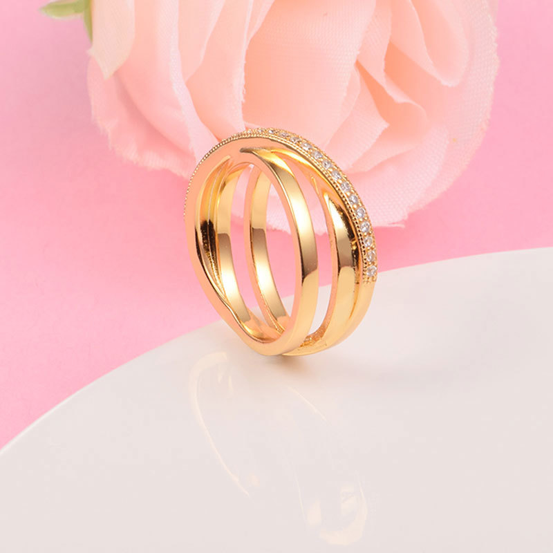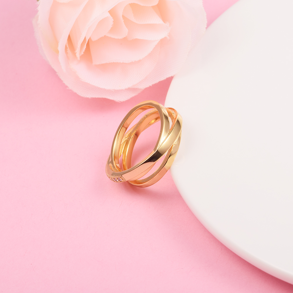Rose Gold Plated Crossover Pave Triple Band Ring With Clear Cz Ring For Women