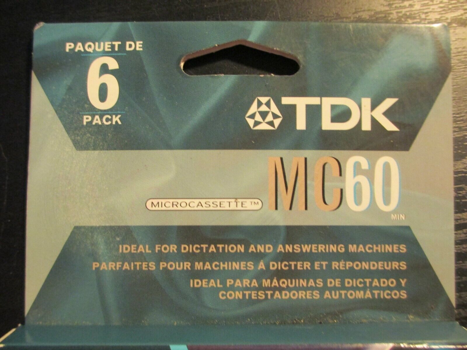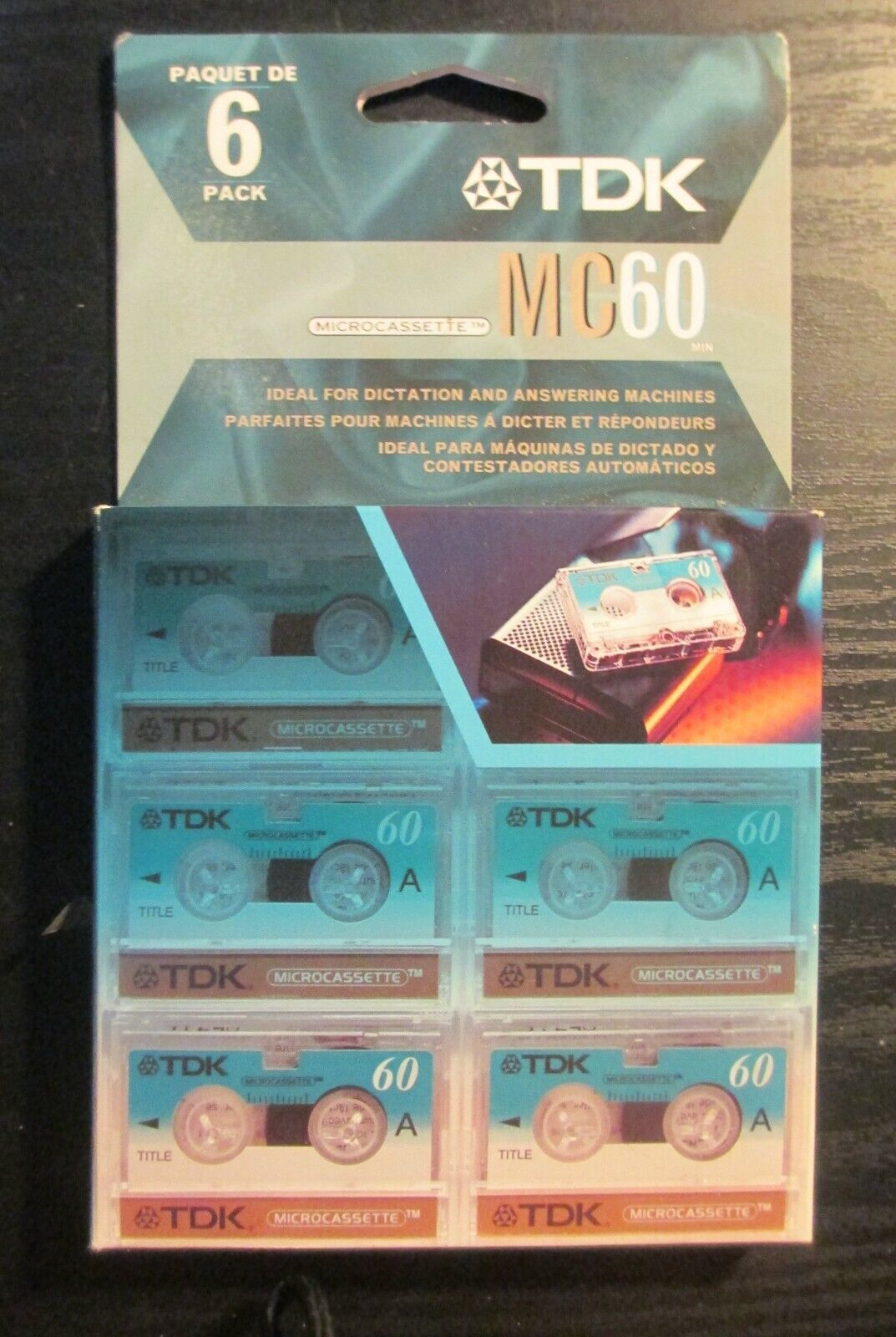 6 TDK MC 60 Blank Microcassette Tapes NEW SEALED