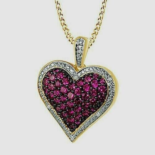 2Ct Round Cut CZ Red Ruby Heart Pendant 14K Yellow Gold Plated free Chain