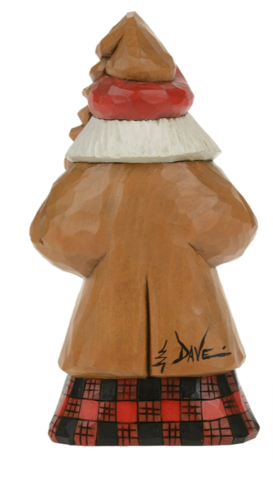 Each Santa is a handcrafted resin replica of an original wood carving meticulously designed by Dave Francis at his studio in Castlegar, British Colombia. Dave's unique folk style is inspired by his one love Christmas and Canada's great outdoors. His devotion and passion for carving truly evokes the spirit of Christmas in every piece.