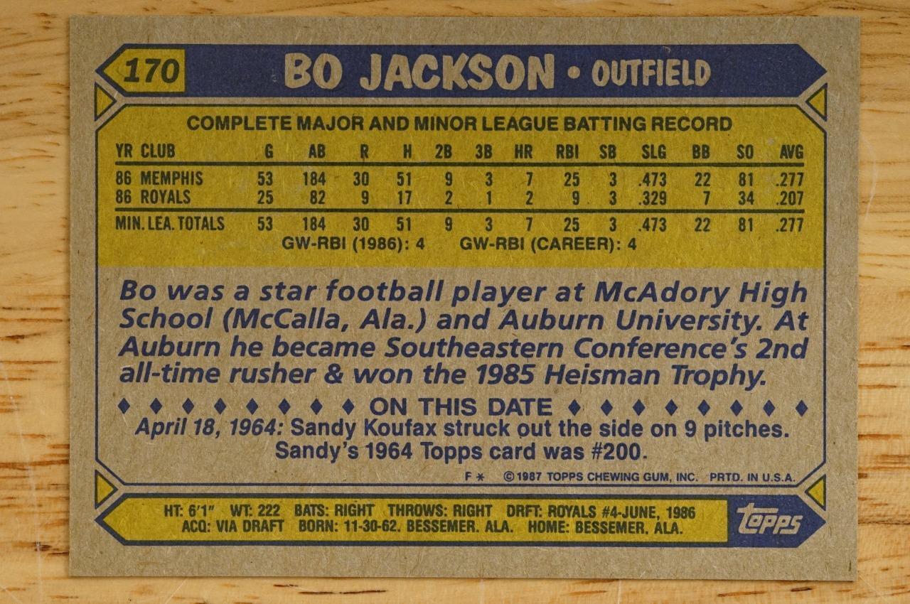 1987 Topps Bo Jackson Rookie Future Stars #170 Kansas City Royals Baseball RC