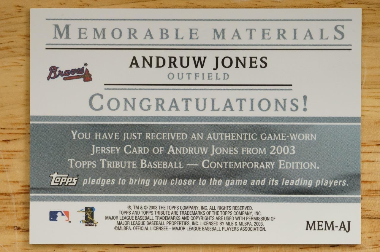 2003 Topps Memorable Materials ANDRUW JONES Atlanta Braves Baseball Card MEM-AJ