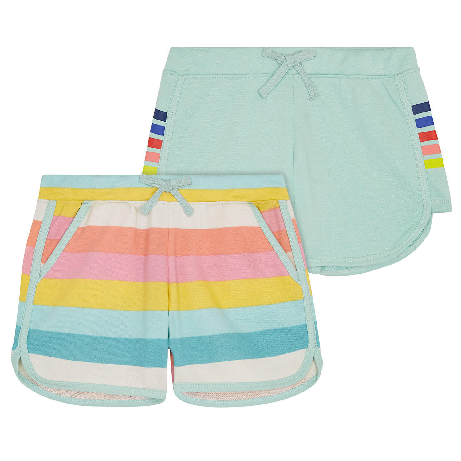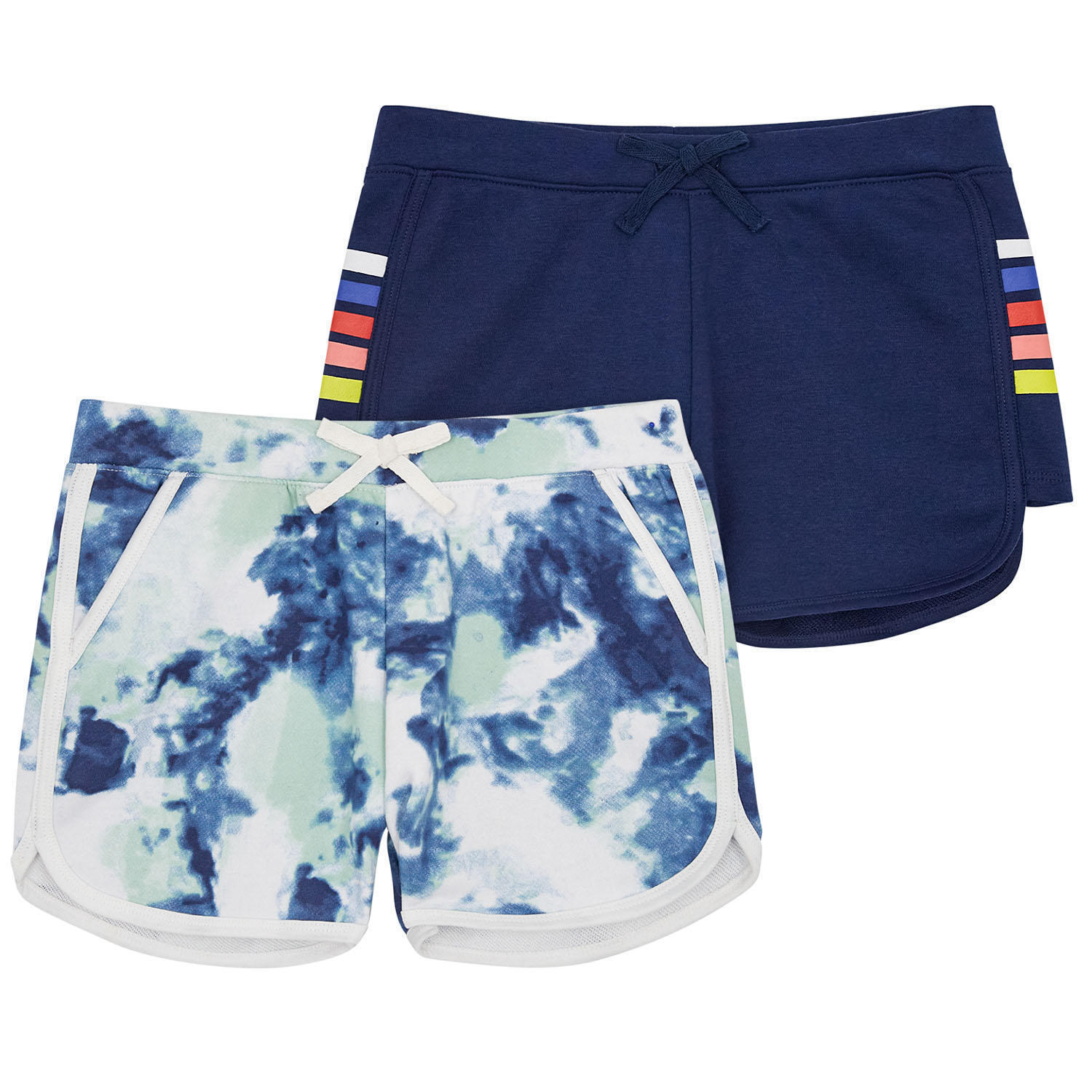 This 2-pack of super-soft, comfy shorts will have her ready for summer. Pair these with any top for the ultimate lounge, going-out or sleep outfit. It comes with a solid short that has cool striped side panels and an all-over print short with side pockets.