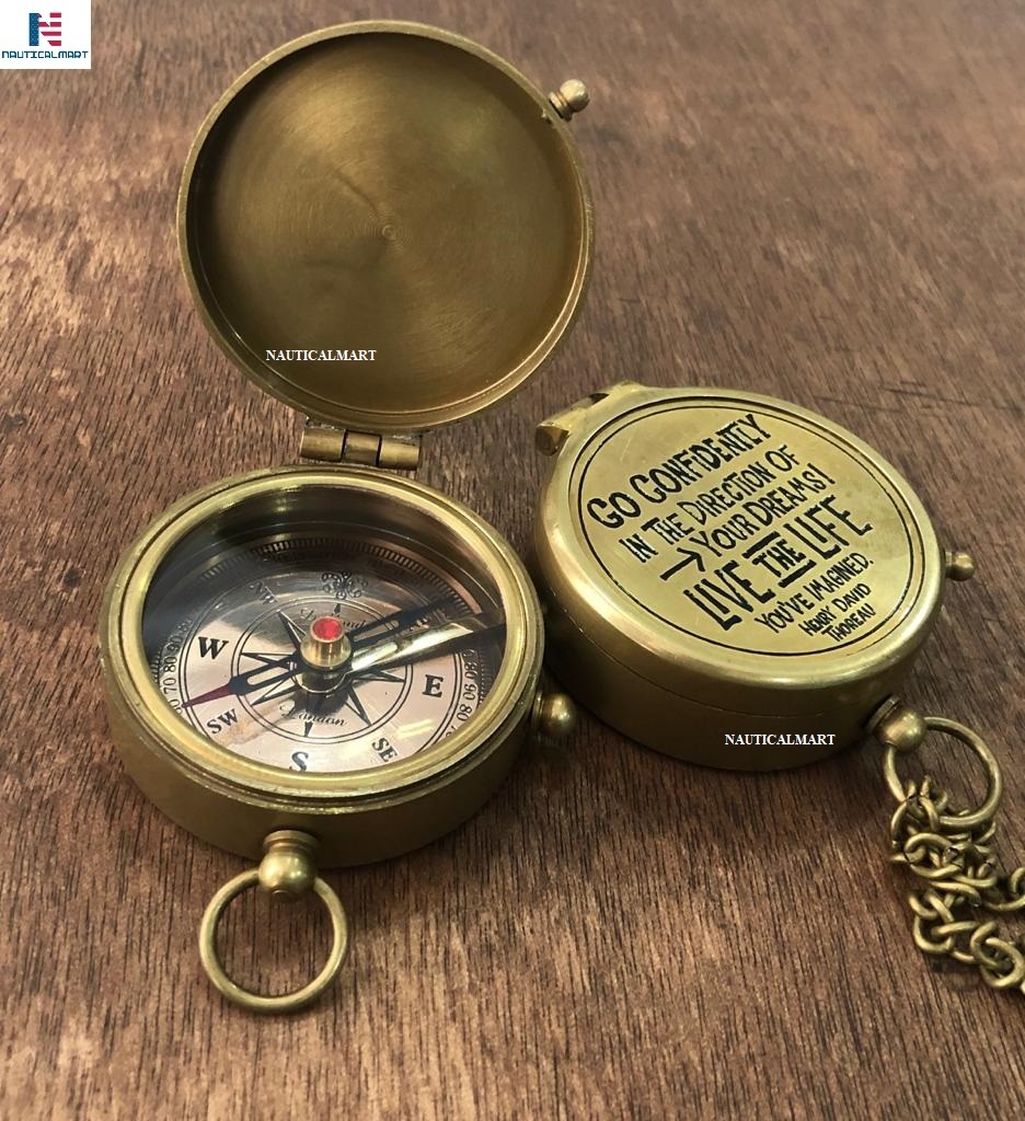 NauticalMart Brass Compass Thoreau's Quote Go Confidently in The Direction of Yo