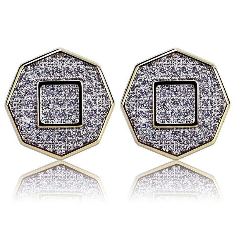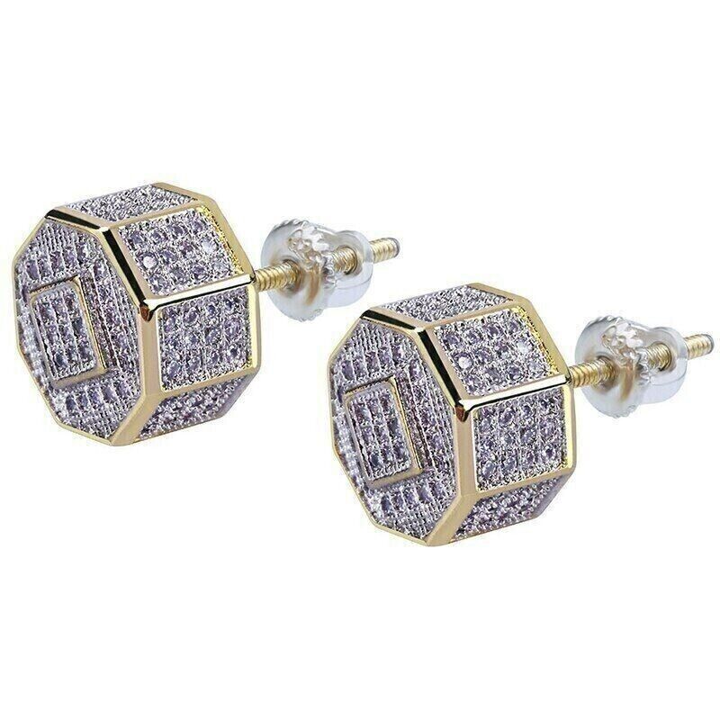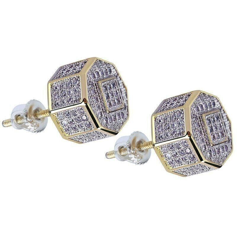 1.30Ct Round Cut CZ Moissanite 14k Yellow Gold Plated Hexagon Stud Earrings