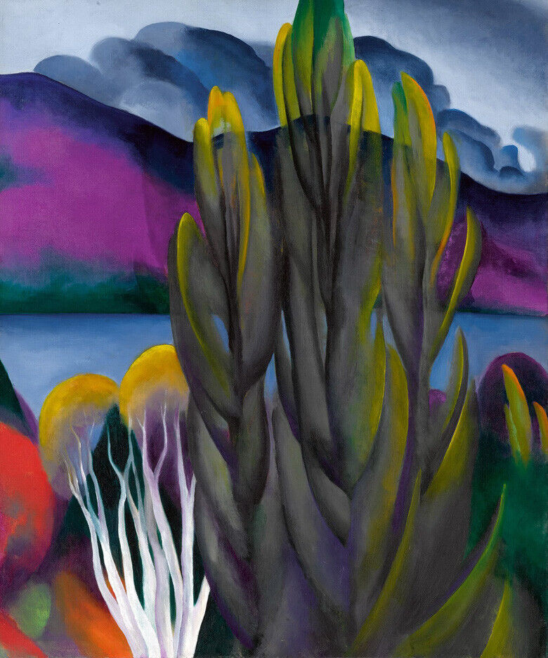 Framed canvas art print giclée LAKE GEORGE WITH WHITE BIRCH Georgia O'Keeffe