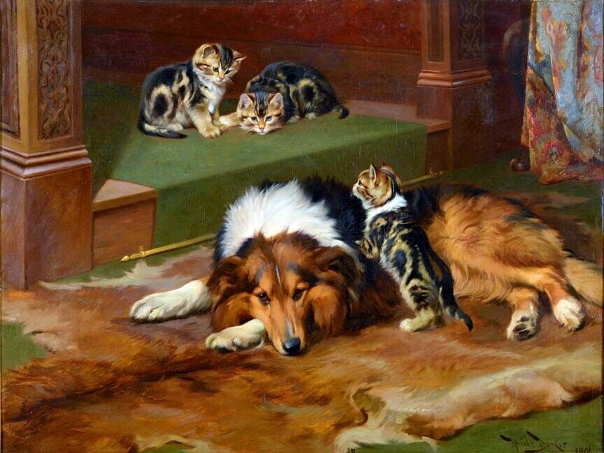 Framed canvas art print giclée PATIENCE IS THE GREATEST VIRTUE funny Dog collie