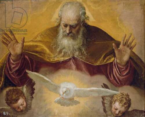 Framed canvas art print giclée The Eternal Father dove cherub god