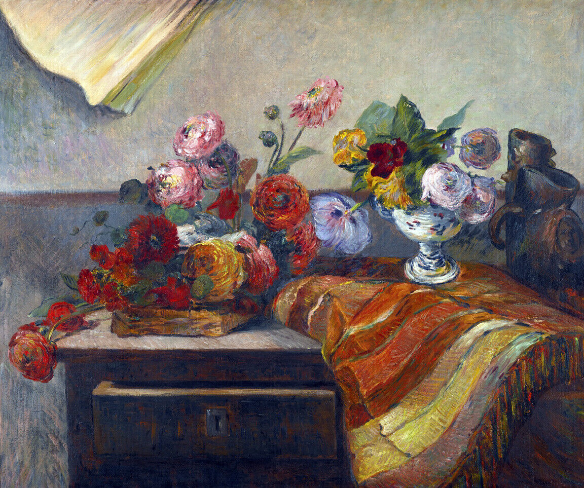 FRAMED CANVAS ART PRINT PAINTING BOUQUETS ET CÉRAMIQUE SUR UNE COMMODE Gauguin