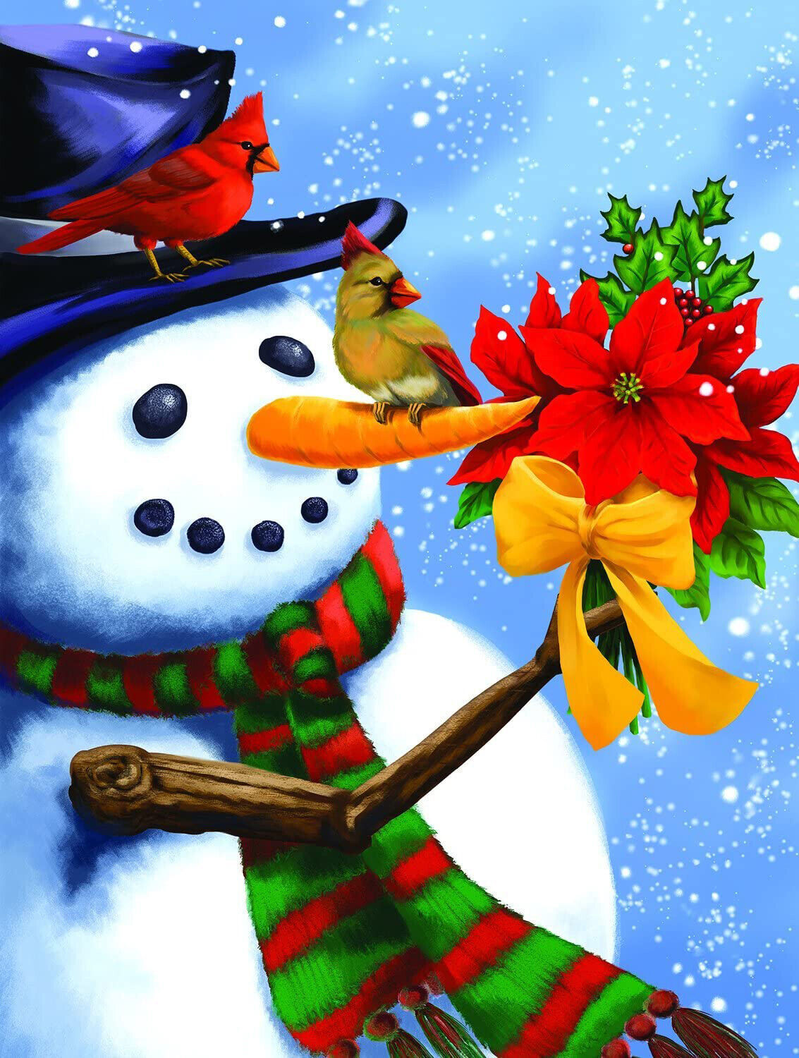 FRAMED CANVAS ART PRINT PAINTING CARDINALS BIRDS SITTING ON SNOWMAN CHRISTMAS