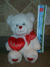 WHITE VALENTINE'S TEDDY BEAR BEMINE HEART SHAGGY PLUSH SOFT