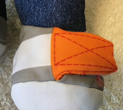 Open and close the fabric fasteners on his shoes