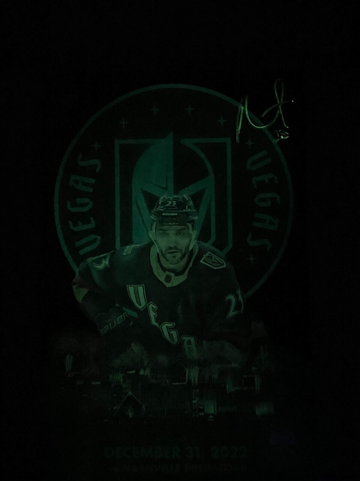 Alec Martinez Vegas Golden Knights 12/31/22 Glow Signed 11x17