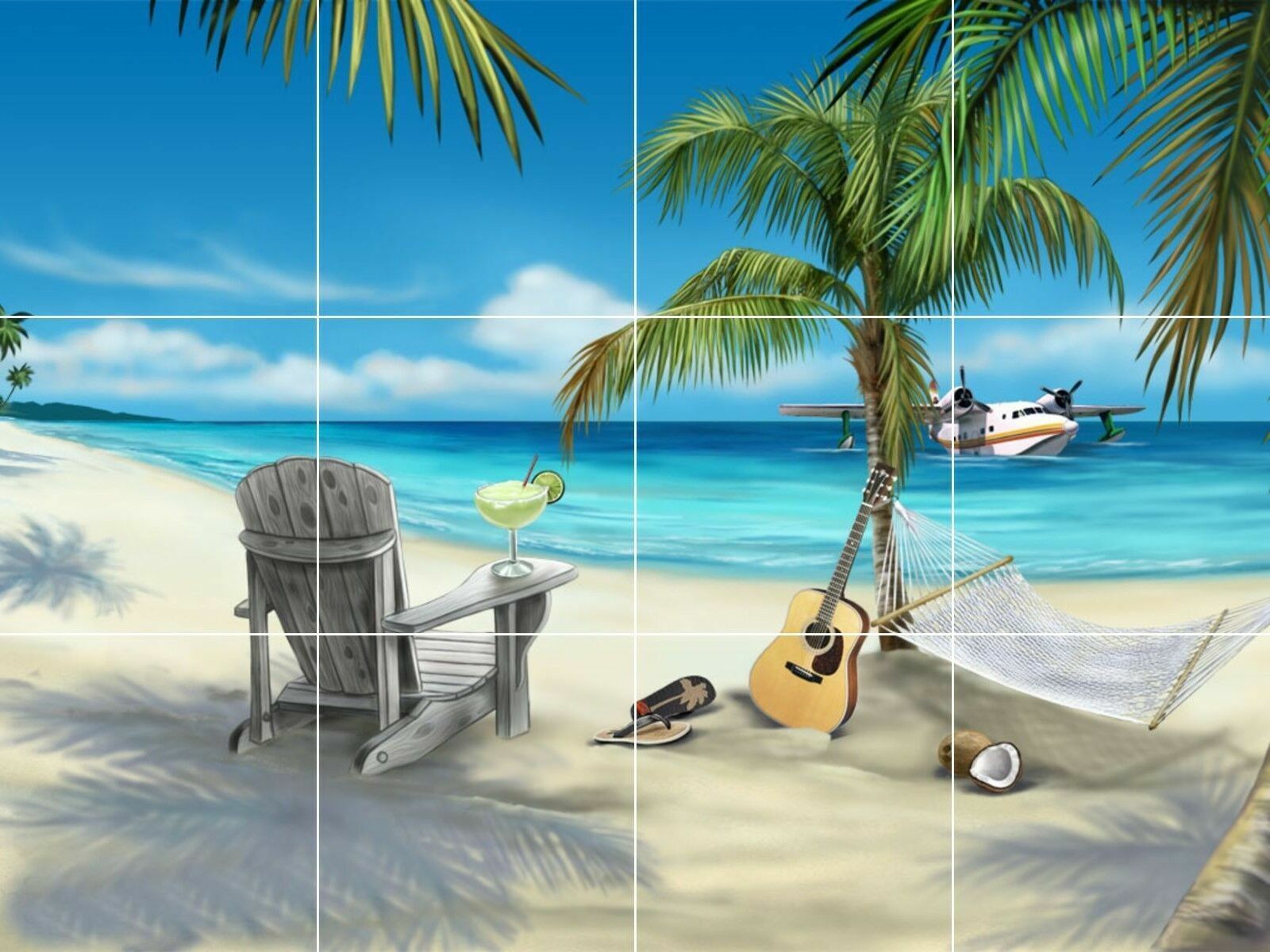 margaritaville beach ocean paradise SEA CERAMIC TILE MURAL BACKSPLASH MEDALLION