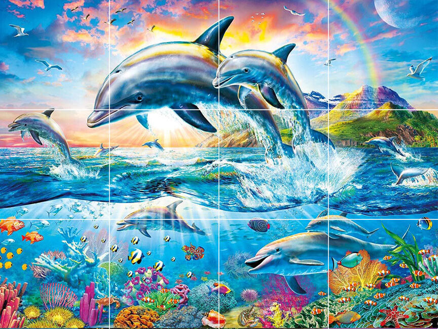 tropical paradise dolphin fish reef sunshine ocean ceramic tile mural backsplash