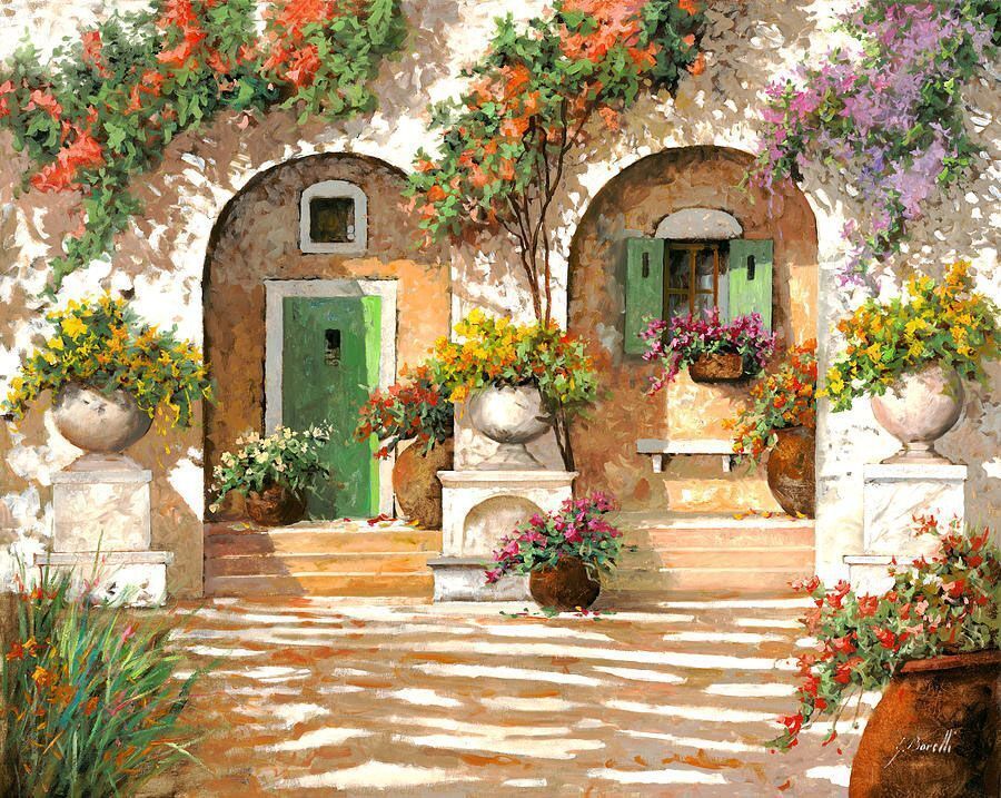 Tuscany Italy courtyard garden view ceramic tile mural backsplash medallion