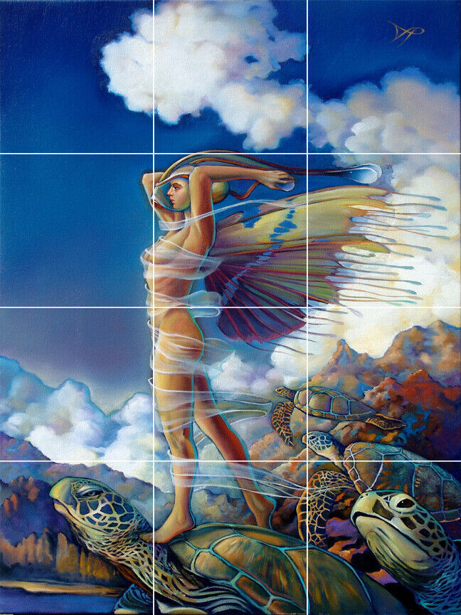 Queen of the sea ocean mermaid butterfly sea turtles ceramic mural backsplash