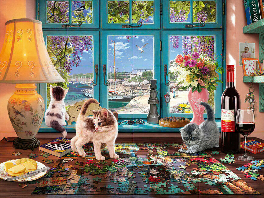Cats Wine Puzzle ocean view harbor beach ceramic tile mural backsplash medallion