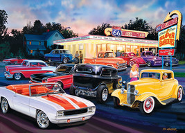 Hot rods classic American muscle cars diner ceramic tile mural medallion vintage