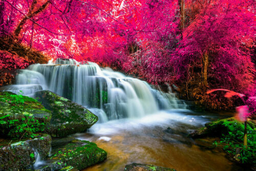 Waterfall in colorful autumn forest fall season ceramic tile mural backsplash