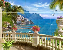 terrace view of sea ocean island tropical Italy ceramic tile mural backsplash