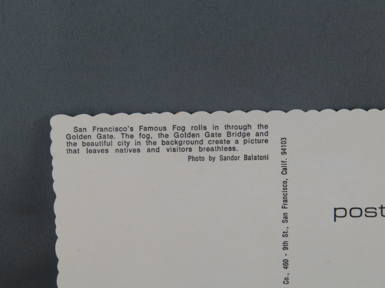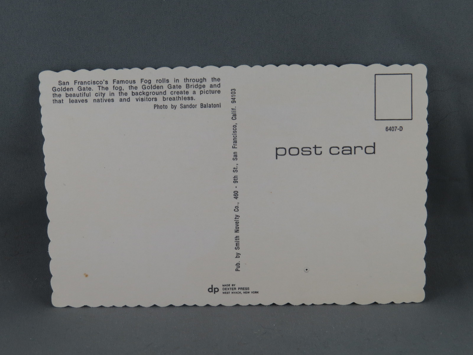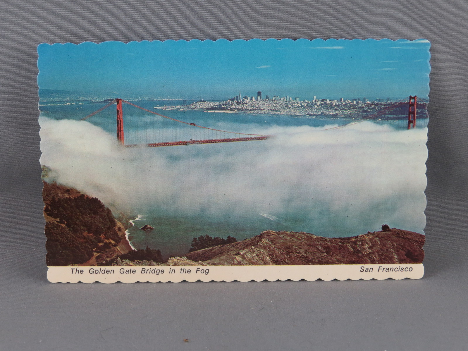 Up for sale is a vintage postcard. It features an image of the Golden Gate Bridge in the fog. What a great addition to any colleciton.