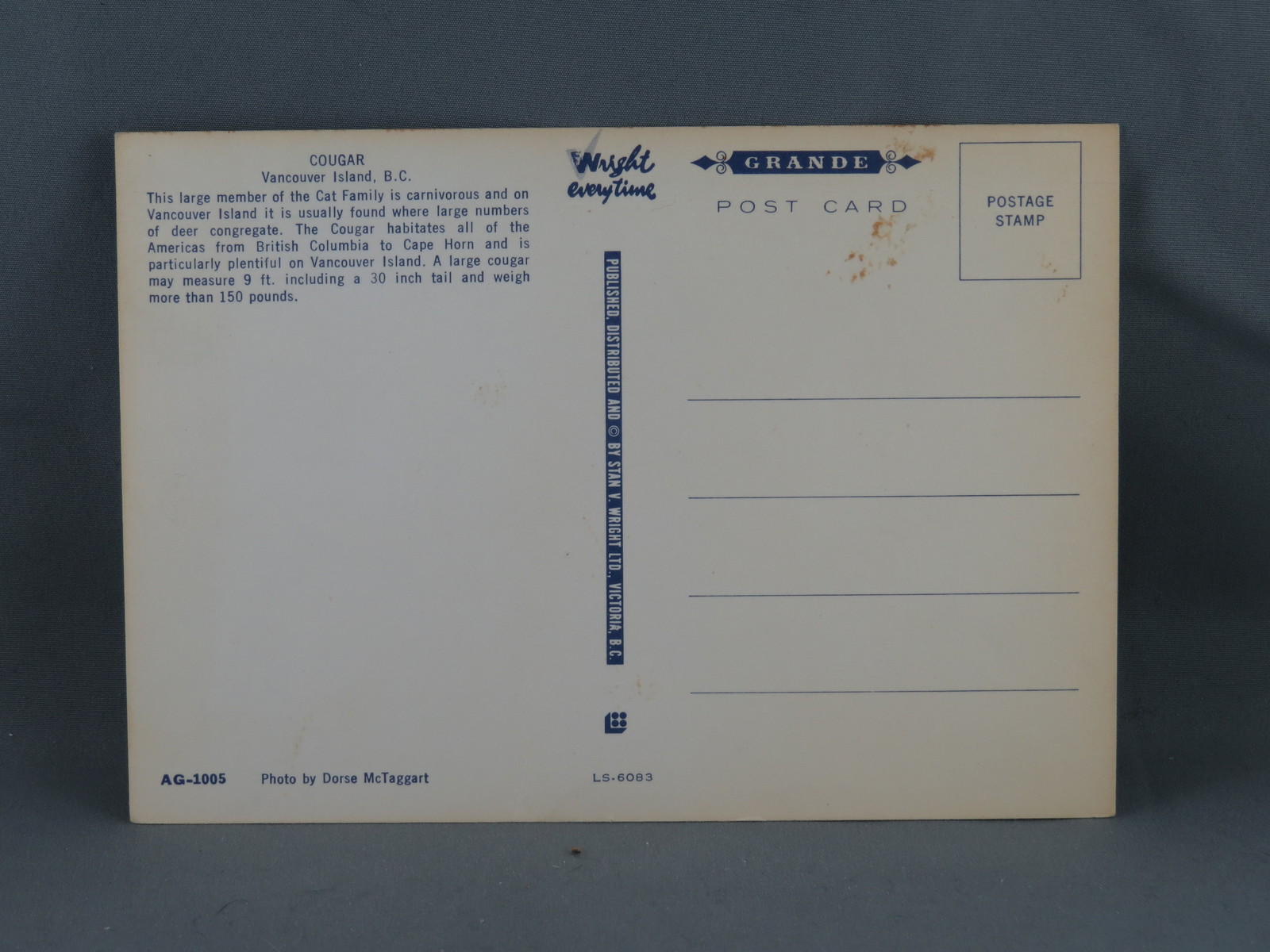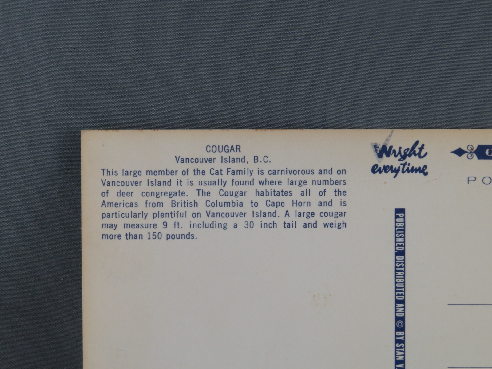 Vintage Postcard - Cougar Vancouver Island - Wright Everytime