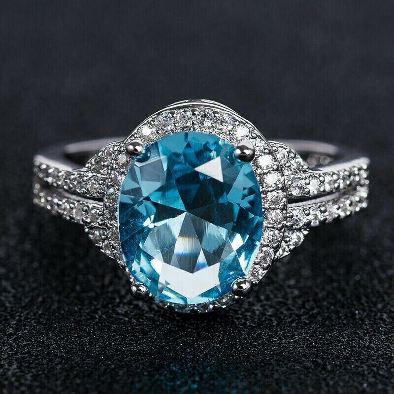 2.5Ct Oval Cut CZ Aquamarine Gorgeous Halo Engagement Ring 14K White Gold Plated