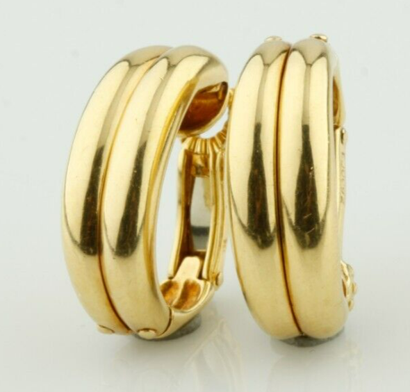 18k Yellow Gold Designer Huggie Diamond Reveal Clip-On Earrings Gorgeous!