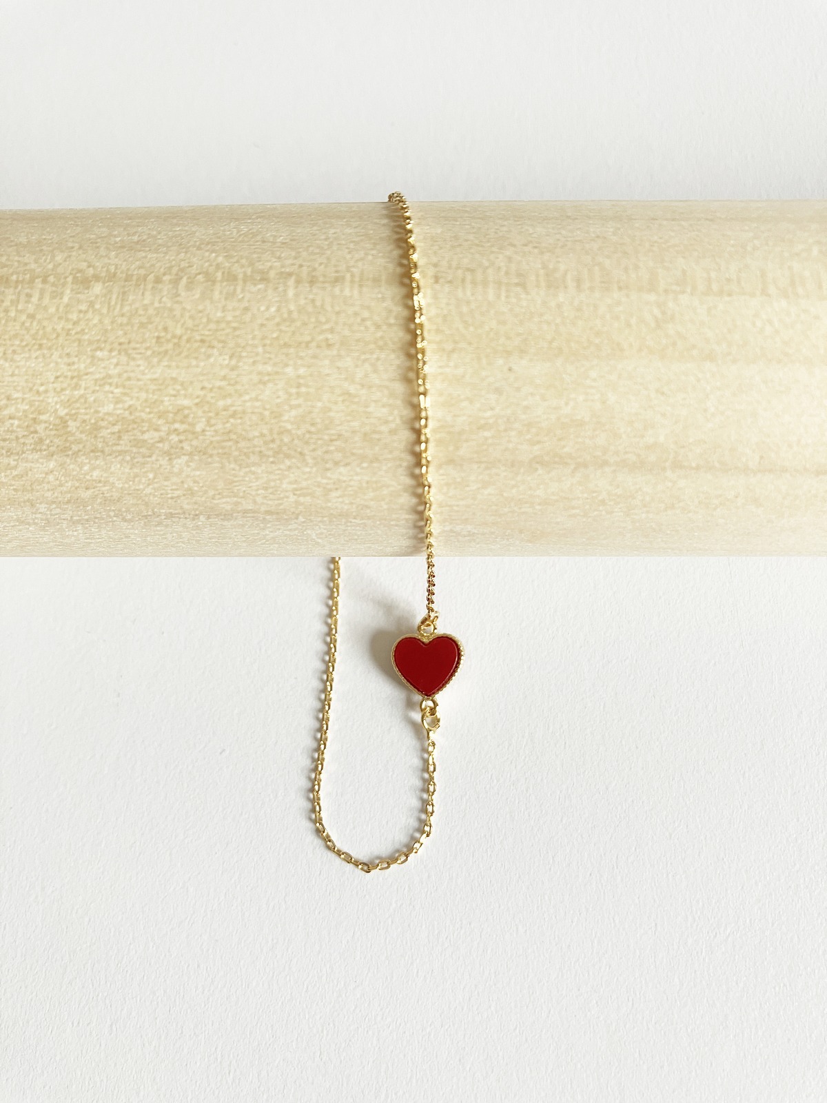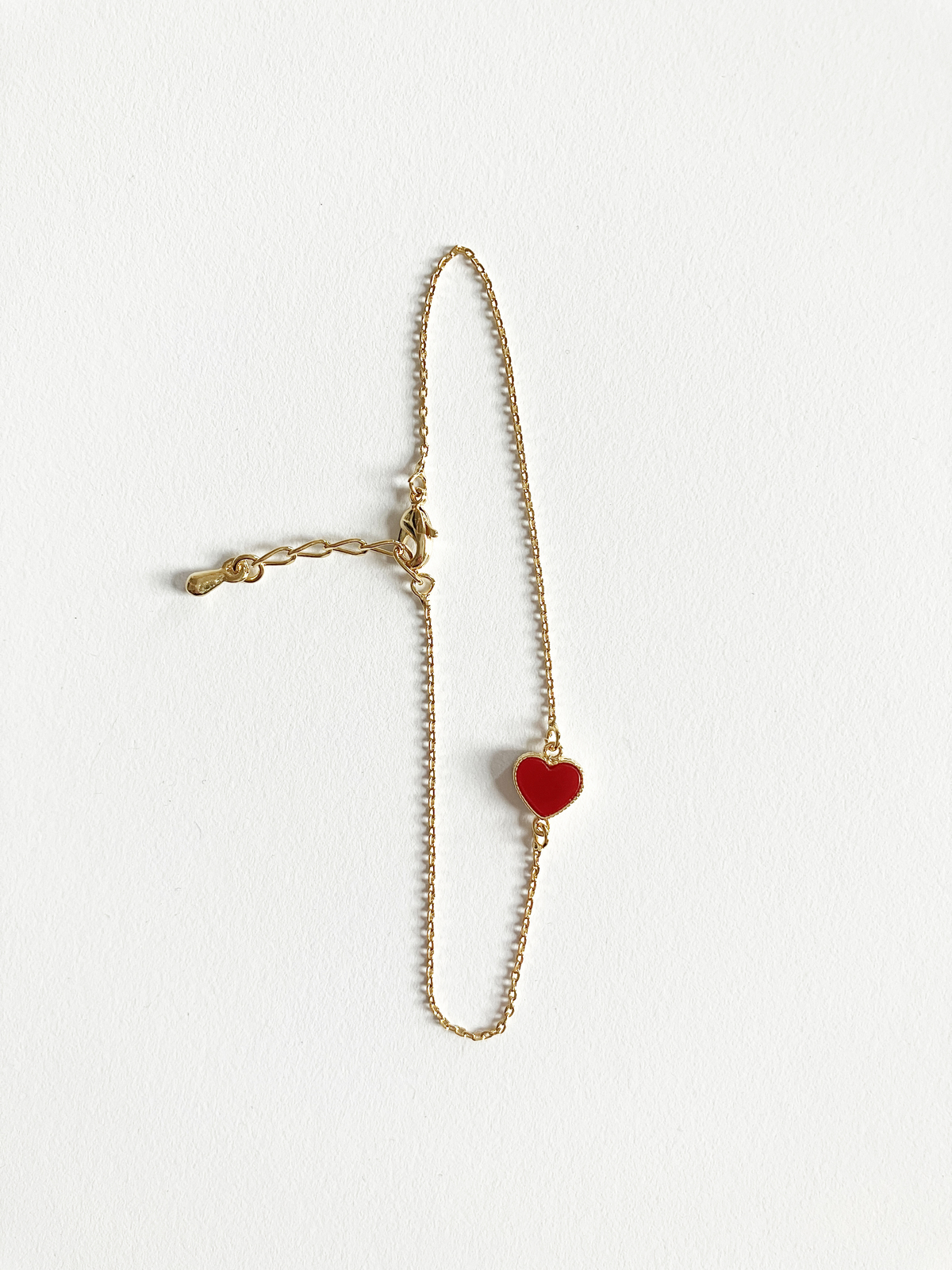 Adorable heart motif bracelet with carnelian stone set in gold plated non-tarnishing surgical steel on adjustable gold plated non-tarnishing surgical steel chain with a lobster clasp. Pair it with a pendant!
