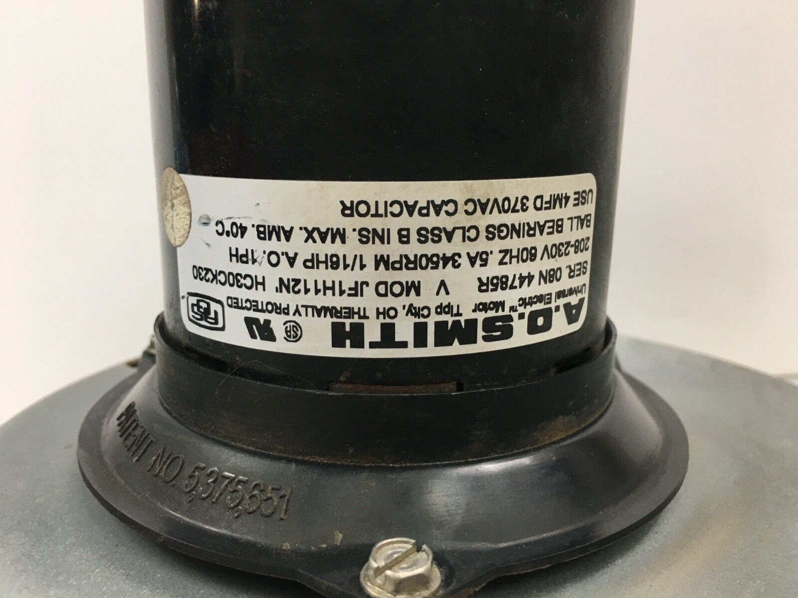 This is A.O.Smith Magnetek Motor Division JF1H112N Inducer Blower Motor Assembly HC30CK230 used part.