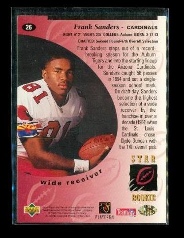 Vintage 1995 UPPER DECK ELECTRIC RC Football Card #26 FRANK SANDERS Cardinals