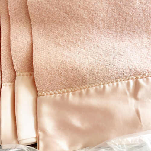 Vintage St Marys All Wool Blanket Camellia Pink Satin Trim Edge 66 x 90 in w BOX