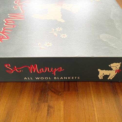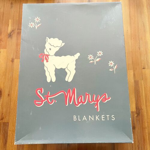 Vintage St Marys All Wool Blanket Camellia Pink Satin Trim Edge 66 x 90 in w BOX. Item looks new in box. Box shows minor wear and writing on cover. In original packaging.