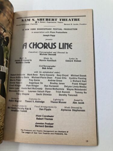 1987 Playbill Sam S. Shubert Theatre Robert Amirante in A Chorus Line