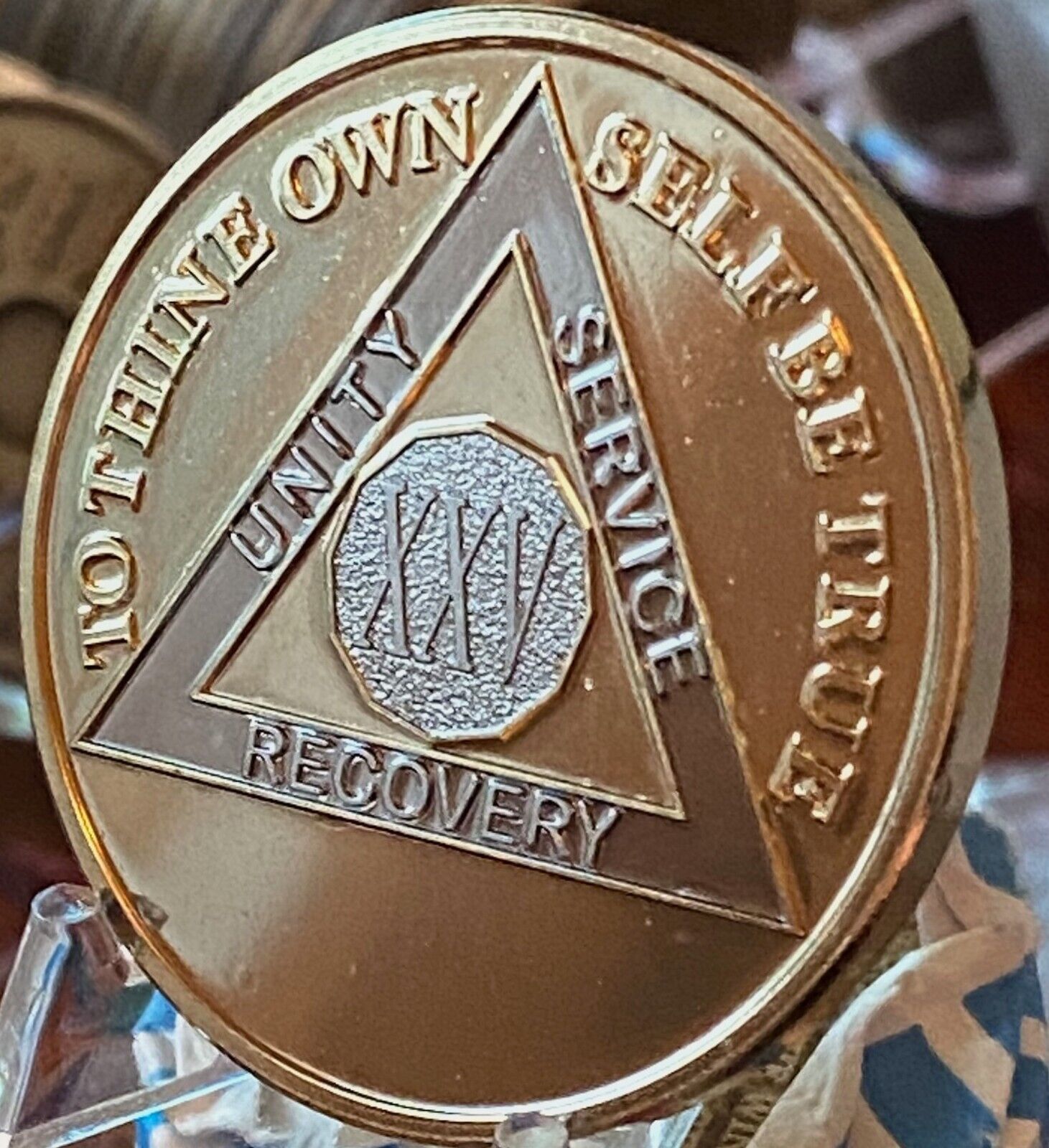 25 Year AA Medallion Large 39mm Bi-Plate Gold Plated Sobriety Chip 1.5 Inch