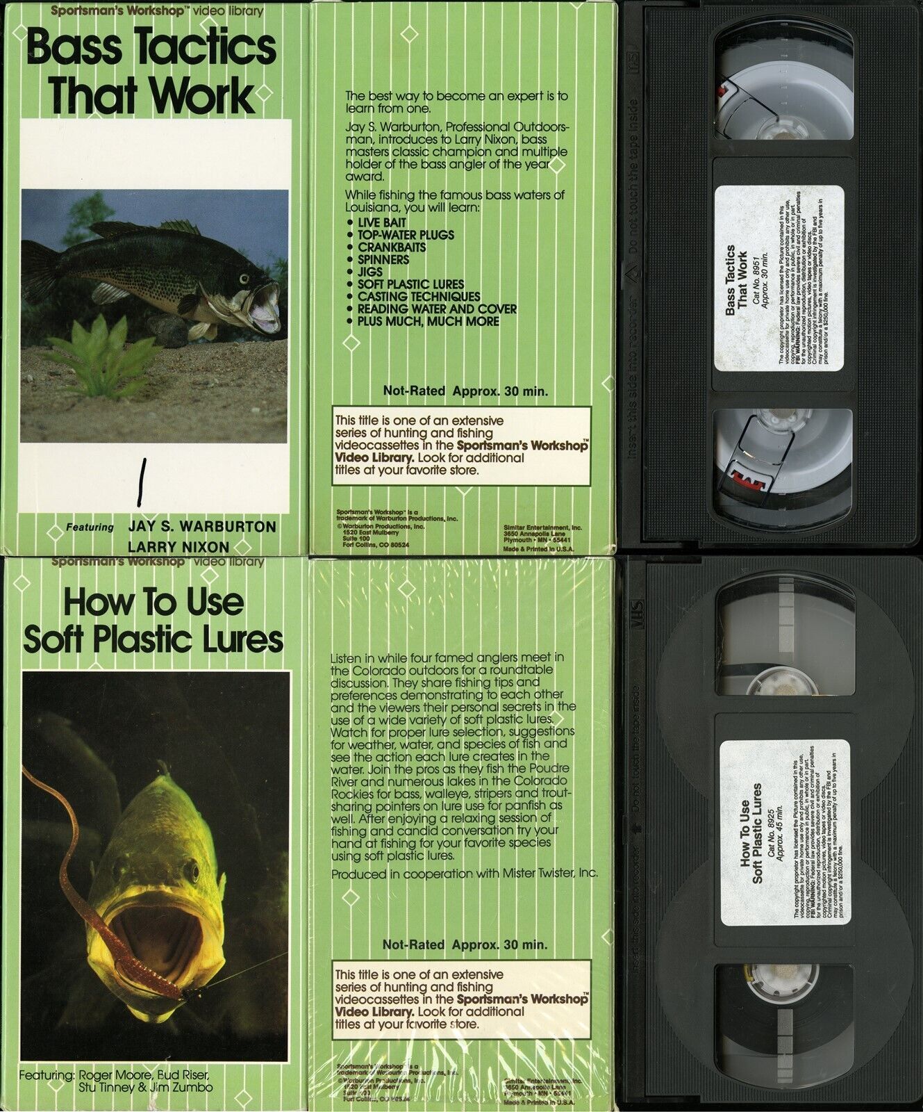 These are two previously viewed VHS TAPES of the rare documentary features BASS TACTICS THAT WORK HOW TO USE SOFT PLASTIC LURES