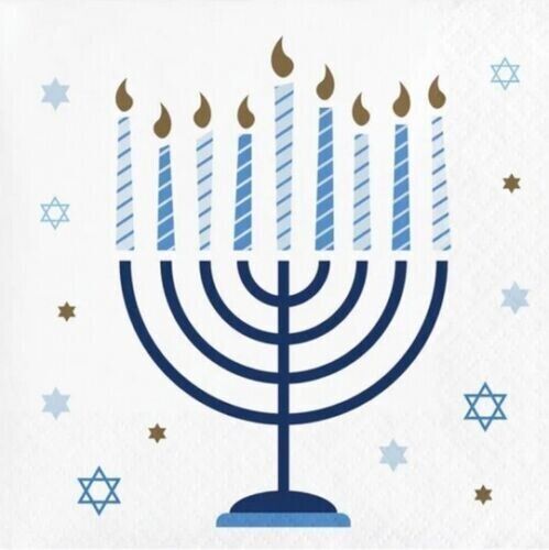 Hanukkah Celebration Beverage Napkins Paper 16 Per Pack 5" x 5" Tableware SEALED