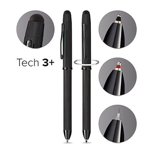 On the other end is a precision stylus to improve accuracy and ease when you interact with your favourite mobile device. However you choose to work and create, Tech3+ delivers on versatility, convenience, and style.