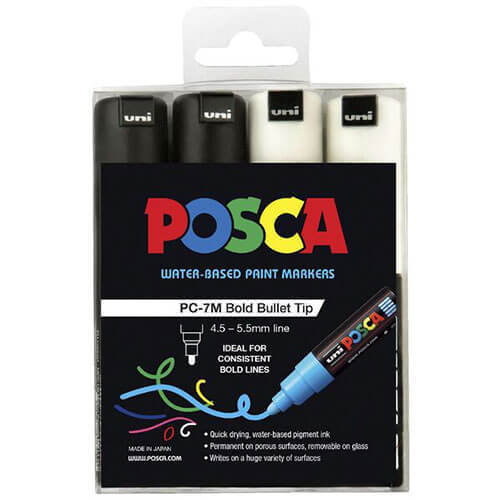 Uni Posca 4.5mm Tip Marker Assorted (4pk) - Black/White