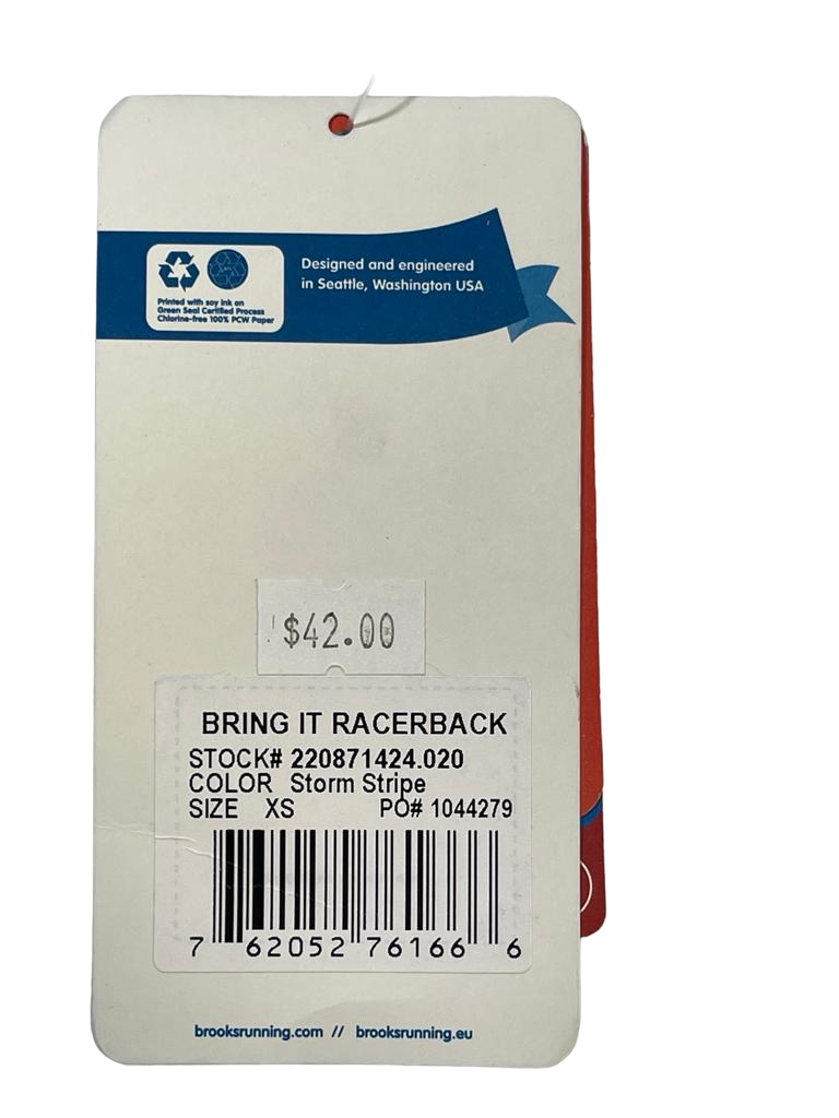 Brooks - Debardeur d'entraînement Bring It Racerback (Storm Stripe) pour femme, XS