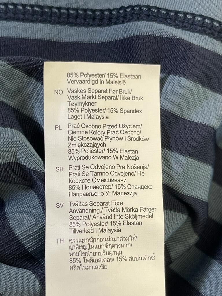 Coupe ajustee. Le tissu extensible dans les quatre sens offre un port confortable qui bouge avec vous. Motif a rayures teint en fil sur l'ensemble. Encolure degagee. Conception a dos nageur. Logo frappe sur la hanche gauche et le haut du dos. Ourlet droit.85 % polyester, 15 % elasthanne. Lavage a froid, essorage doux. Importe.